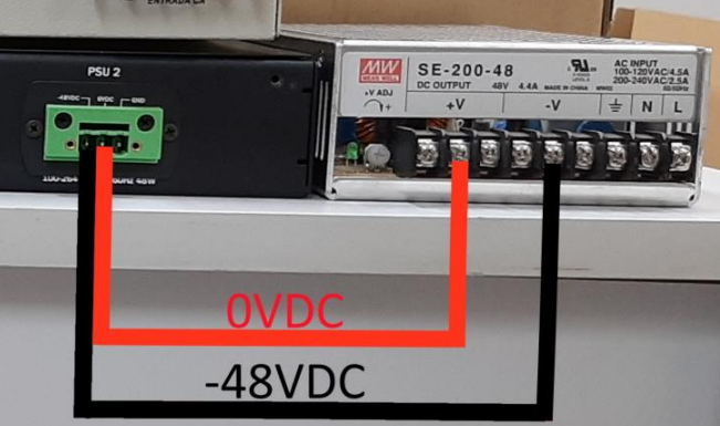 IMPORTANTE: Efetue a ligação conforme descrito no procedimento, pois caso seja ligado de forma invertida, poderá ocasionar a queima da fonte DC da OLT.