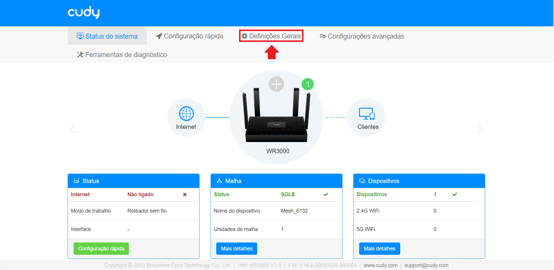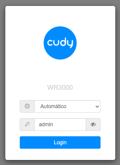 1. Entre no espaço de configuração CUDY através do IP 192.168.10.1