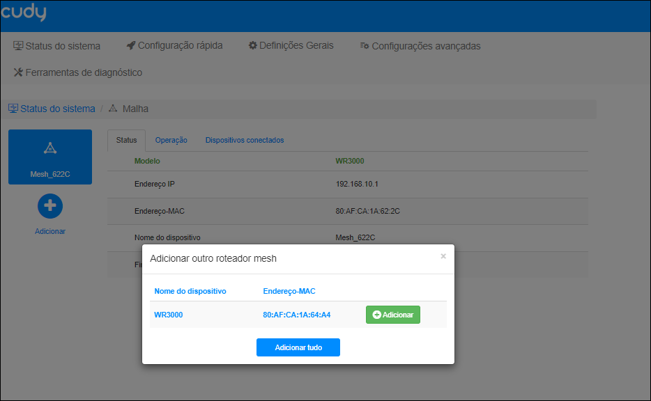 * O WR3000 controller irá identificar o Satélite. Clique em Adicionar:
