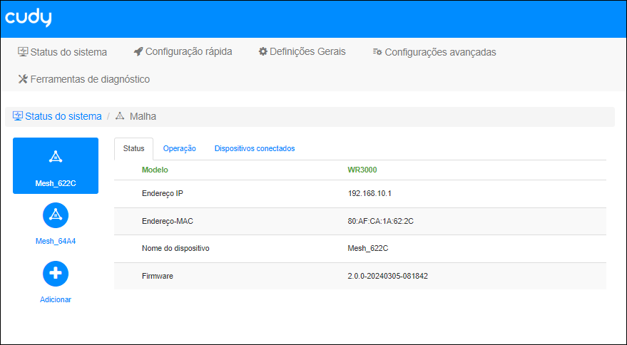 Acessar o WR3000 controller, e clique na opção de MAIS DETALHES na opção de MALHA:
