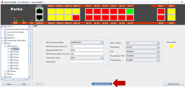 • Com o loggin realizado no Parks Easy, vamos clicar duas vezes em cima da nossa OLT Fiberlink 50048.